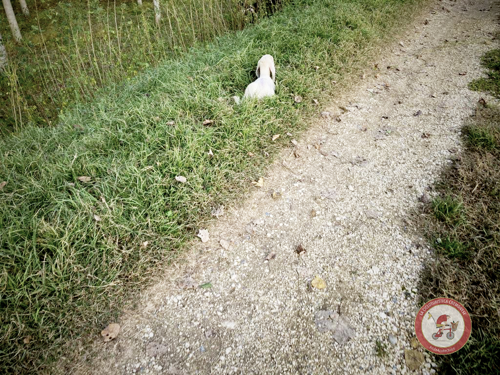 Nei pressi dell’Oasi del WWF Le BINE a Calvatone lascio il fiume, attraversando di nuovo la strada provinciale per Mantova, scendo verso Tornata, percorrendo un pezzo di sterrato che costeggia il Canale Acque Alte arrivo al borgo di Casteldidone, raggiro il Castello Mina della Scala dove il proprietario, tipo molto singolare e simpatico, racconta che nelle sale dell’antico maniero si manifesti un fantasma, peraltro documentato da alcune indagini ufficiali.