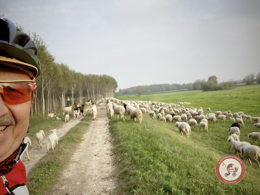 Finalmente arrivo sulle sponde del fiume Oglio e percorrendo l’argine destro incontro un vecchio pastore, che con voce acuta ed i suoi cani, accompagna un gregge piuttosto numeroso di Pecore e Capre con i loro piccoli che fanno un'immensa tenerezza.