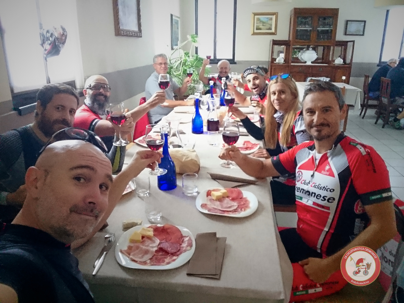 Le porte di Pizzighettone ci hanno accolto sotto un sole caldo e luminoso che faceva già presagire il papabile divertimento pomeridiano, ma prima, dopo "ben 25km" la prima pausa, gambe sotto il tavolo e tante tantissime risate.
