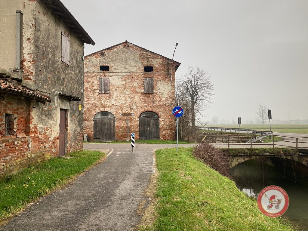 Con la nostra amica Miki uscendo dalla citta di Cremona, imbocchiamo la ciclabile della Via Brescia, ed arrivati a Robecco con la sua Chiesa e Torrazzo imponente, attraversiamo il fiume Oglio e subito si presenta il castello di Pontevico con la sua Torre del guado che ci segnala il momento di svoltare verso il parco del Strone. Qui incrociamo un gruppo a cavallo che si gode il paesaggio, in questo boschetto ricco di piccoli corsi d’acqua, la chiesetta e la cascina sono la sede del Parco, che in altro momento più estivo possiamo trovare la Signora Teresa: una volontaria a custodia del luogo, che ci ristora con birra fresca e panino con salame, che per un cicloturista è un momento di goduria tanto quanto pedalare, non so se mi spiego?