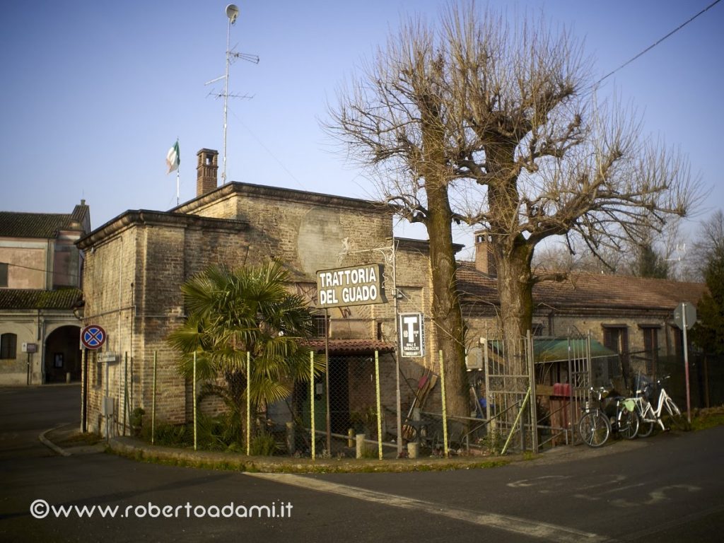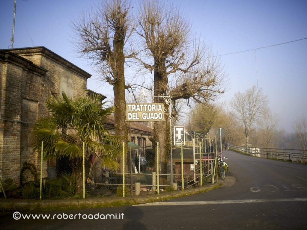 Ci lasciamo il paese alle spalle e sempre seguendo l'argine asfaltato del fiume Adda proseguiamo in direzione Pizzighettone. Seguendo la ciclabile si raggiunge il ponte che permette di attraversare il fiume, purtroppo il ponte ciclo-pedonale in seguito ad una grossa piena del fiume è stato abbattuto pertanto è necessario sfruttare l'unico rimasto, stando attenti al traffico. Una volta attraversato il ponte sulla destra troviamo la trattoria di un amico ciclista, La Trattoria del Guado, un locale a gestione famigliare impregnato di storia. I suoi locali hanno un sacco di storia alle spalle che meritano un articolo a parte.