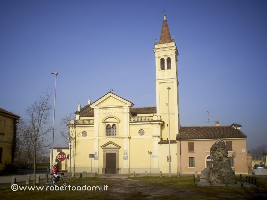Giunti a Izano seguendo la traccia, sbuchiamo proprio davanti al Santuario della Beata Vergine della Pallavicina